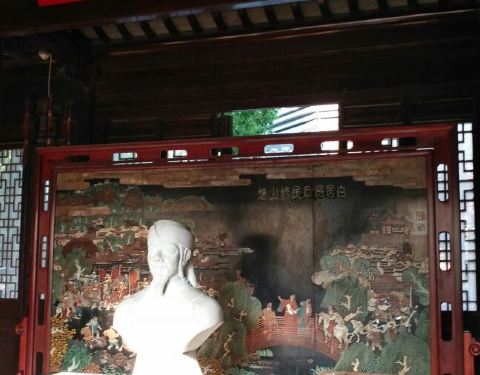就是唐代大诗人白居易纪念馆,正门墙上写着山塘始祖,乐府诗神八个大字,进门是白居易的石雕像,穿过...位于苏州山塘街口御碑亭对面,就是唐代大诗人白居易纪念馆,正门墙上写着山塘始祖,乐府诗神八个大字,进门是白居易的石雕像,穿过门厅,一栋仿古建筑就是纪念馆,免费参观。