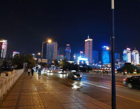 西宁市的中心地带了,广场还是挺大的,靠着河边,景色还是不错的。尤其是夜京还是值得一看的。周围都是高楼大厦,灯火通明,拍出来的照片还是挺漂亮的。旁边的两条路是长江路和黄河路,都是比较繁华的街道了。这...