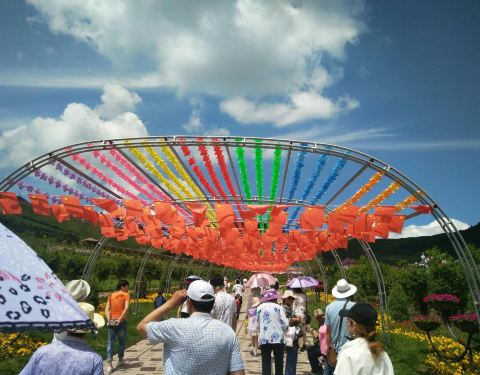 住在王府井楼上和颐酒店,离这个广场很近,7月的鲜花各种绽放!很悦目!散步还是不错的选择,清真的酸奶真的好吃,本地的雪糕味道也很纯正,面片子味道也不错!