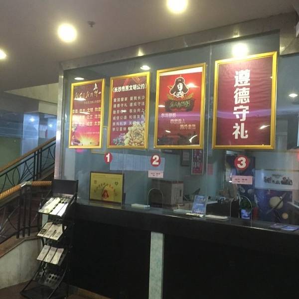 湖南大剧院就在通程大酒店旁边,但跟这酒店相比,它的装修是明显的旧很多湖南大剧院就在通程大酒店旁边,但跟这酒店相比,它的装修是明显的旧很多。这里应该时常会举办大型的音乐会或文艺演出,平常日子就播放电影。