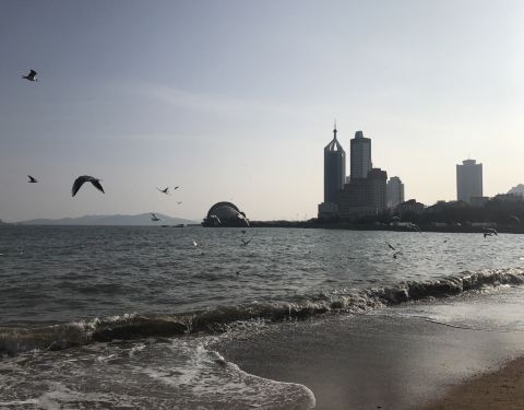位于栈桥旁边的海滨浴场,沙滩不是多大,旁边还有一些怪石嶙峋的海礁石,浪比较大,可能这是人相对比第一海滨浴场人比较少的原因吧,不过这里可以近距离从不同方位看看栈桥,这里还有大量的海鸥嬉戏,游人也是非常的多,还是很不错的!