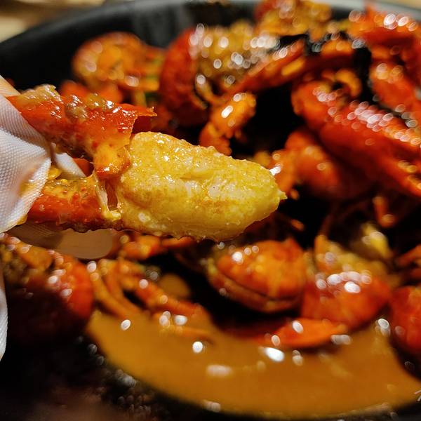 长沙那必须是小龙虾啊!最后一家重磅出场! 两个问号:小龙虾钳子肉可以这么肥?螃蟹还能卤成这种味儿? 一个感叹号:也太太太好吃了吧! 点单:秘制卤蟹、秘制口味虾