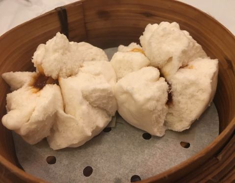 专门跑过来中环这边喝早茶。由于不是在大马路边,跟着导航也没有找到,后来是附近问人,别人指路找到的。 门口就很怀旧,不知道是阿拉伯还是印度人做门面,听说是这里的特色,无论是大门还是楼梯以及大厅的陈设都特别怀旧,加上服务员上每个点心都是背着一个盘,每次出一款点心,形式很特别~ ༓༓༓༓༓༓༓༓ 【叉烧包】 这个叉烧包真的好吃!无论是包皮发起的松软度和叉烧的香味,香甜得来叉烧味也很香,推荐! 【猪肝烧卖】 真的是第一次吃这样的搭配,猪肝包着里面还是一块肉丸,猪肝切得很厚,口感比较饱满,不过猪肝本身的味道好像不是很突出,加上烧卖馅儿一起吃,其实有点腻。 【滑鸡球大包】 这个是招牌,但是真的很大一个包,里面是鸡球肉搭配一个熟的蛋,也挺香的,就是感觉吃来几个类似的点心后,味道感觉都差不多,不过由于是特色,也推荐点来吃。 感觉习惯了吃什么就在菜单上勾什么,到这里要好像等推车上点心一样,不知道下一个点心是什么,虽然也挺有趣,不过就是有点不方便吧,尤其是赶时间的游客。 而且总体来说,价钱还比较高,作为喝早茶来说,两个人这么吃下来就要300多港纸。加上都是各种包,特别饱肚,感觉没吃多少款就吃不下了。不过作为体验特色的话,还是可以来踩点打卡~