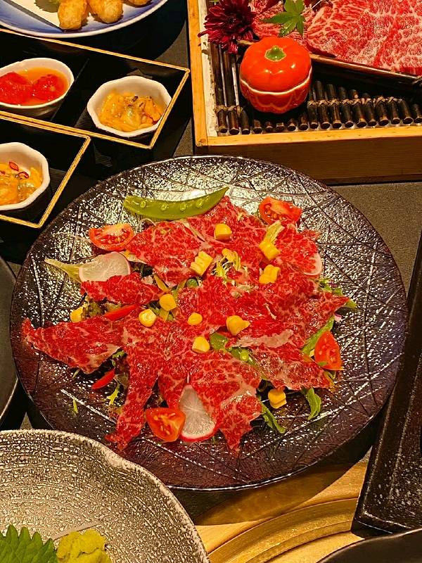 南门选择吃日式烧肉,这家店是一个比较好的选择❣️ 专门做和牛炙烤的店,其主厨是有着20年炙烤经验的米其林二星主厨! 从味道和环境来说在这里就餐会有一个不错的体验! 庭院式的外景,黑金打底的内部环境 金属和日式和风的自♡由切换! 充满了高♡级感,每一桌配备几位服务员 不管是烤架的更换还是对肉的熟度把握都特别好! 肉质没的说! 推荐指南▸▸▸▸▸▸ ✿和牛烧肉拼盘 解决了选择困难症的烦恼,每一种都是牛身上精华又有其特色的! 牛肉纹路清晰,份量也挺足! 可谓是和牛盛宴,每个部位烤出来都很美味! ✿厚切牛舌 这个厚度刚刚好!选用精华的部分 软嫩多汁充满嚼劲! ✿火炙和牛寿司 牛肉很大一片,用炙烤的方式 这样牛肉很嫩,裹着饭团,一口下去满足! 💛店名:铭牛和牛烧肉料理(高新月牙湖店) 💛地点:吉瑞一路200号航♡天城上城二♡期八栋一层附7、8号 💛营业时间:11:00-14:00 17:00-22:00