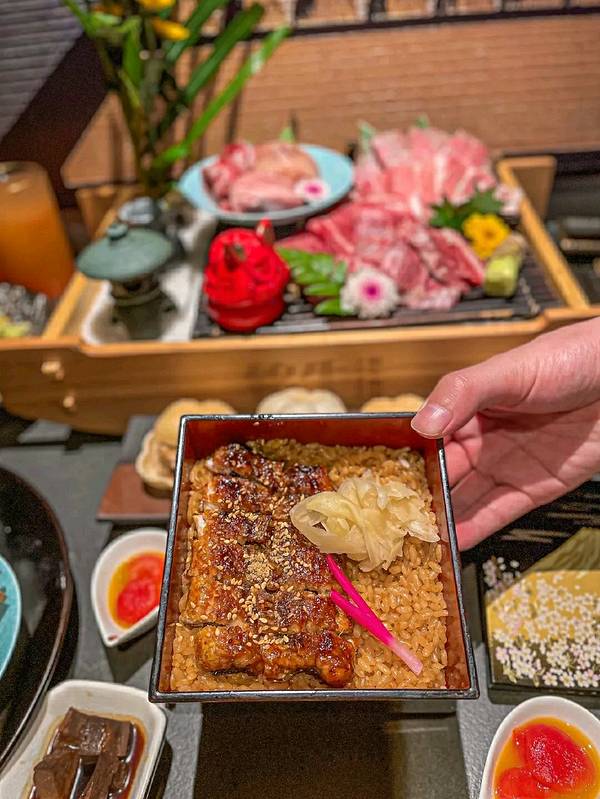 这家在南门的和牛烧肉真的是我的宝藏了 不仅有M12级别的和牛 还有慕斯质地的鹅肝 简直就是我的梦中情牛 🪧铭牛和牛烧肉料理 吉瑞一路200号航天城上城2期8栋1 F 一进去是暗黑低调的黑金风 扑面而来的高级感,很适合情侣👫约会 还有烤肉管家全程帮烤,仪式感满满 ✔️和牛烧肉拼盘 一次性吃到5种高级和牛 有极品霜降牛小排+特选上脑 铭牛特选横膈膜+特选厚切牛舌 特选牛肋条+伊比利亚黑猪薄切五花肉 油脂超丰富,淡淡的奶香肉香绝了啊 ✔️铭牛刺身拼盘 三文鱼🍣+蓝鳍金枪鱼+扇贝贝柱 很鲜美,配了手磨的山葵泥 果冻一样的口感,一点腥味都没有 ✔️黑醋鹅肝慕斯 小樱花的外壳+慕斯质地的鹅肝 第一次吃到这种形式的 一大口闷,巨香巨满足 ✔️活烤鳗鱼饭 日式的木盒超有感觉 鳗鱼烤的很肥美鲜嫩 酱汁味道咸鲜甜,渗透进米饭🍚