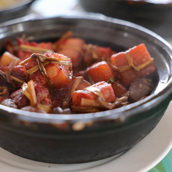 路边随意找了一间餐厅午饭,因为赶时间就选了蒸菜钵钵,上茶比较快,上来之后发现是本地潮菜吧,还挺好吃的红烧肉,肉嬾微甜香芋南瓜煲,放了大量的冰糖,香芋很粉,南瓜本身就甜,特别甜,我又很喜欢,超甜的,真的当一个甜品吃的咸鱼茄子煲,这是稍微比较下饭的一个菠萝鸡,又是甜的,我觉得挺好,虽然嗜辣如命,偶尔换两顿清淡的也很适应,潮菜一直都喜欢,在广州就有好多不错的潮菜馆呢!