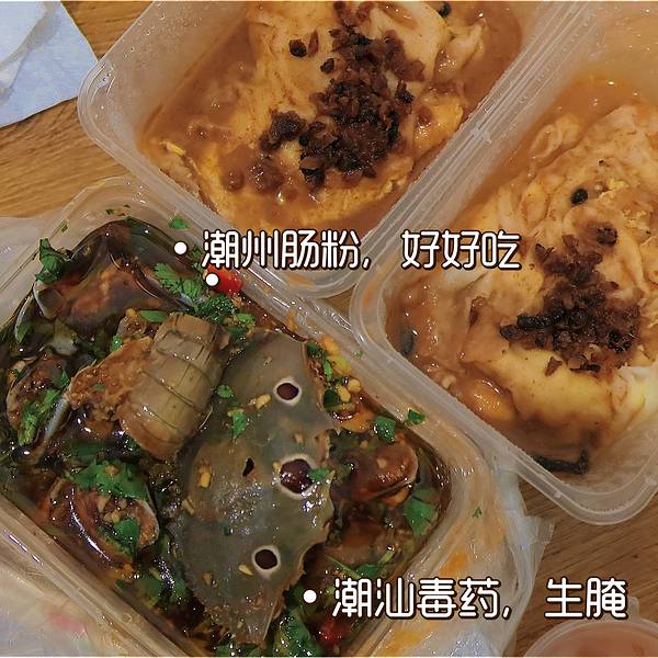 打包了一小份生腌回民宿吃,里面有三眼蟹、皮皮虾、血蛤,挺好吃的,推荐👍鱼生没有尝试最后还叫了外卖卤鹅打包坐高铁回广州🤭也好吃,家人好爱吃