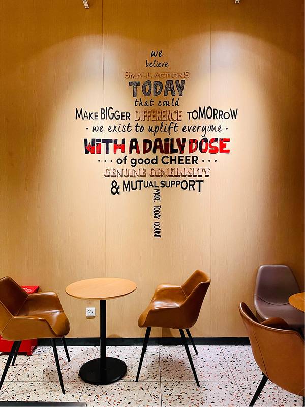 这家TIMS店内挺宽敞,里侧有一张大长方形桌子,没有其他客人,我们四个坐下非常舒服。 朋友之中,2位点了澳白,我点了热红茶,挺大杯的,没喝完。口味无功无过。 可能是国庆的原因,点单后送了个小礼品,手工拼搭的“爱上海”小手机支架,但是这做工有点粗糙。 店里环境很适合朋友小聚,客人不多,不嘈杂,我们一直聊天到店员来说“要关门打烊了”才走。 📇地址:上海市东安路562号徐汇绿地缤纷城西区1层月光中庭 🚌交通:7/12号线龙华中路地铁站6号口步行70米 🕐营业时间:10:00-22:00 💰人均:29元