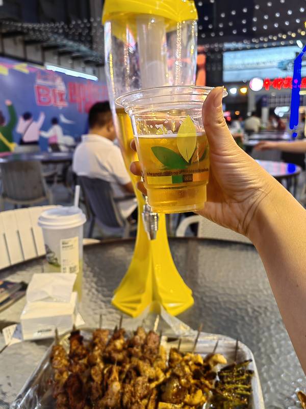 晚上入住银星酒店,真的是很老的酒店,差评,哎。想把这个妆焊在脸上晚上在星光夜市喝啤酒。他太白了,脸比我还小,气人。张师傅去买的酒,喝完了,烤串一般般。
