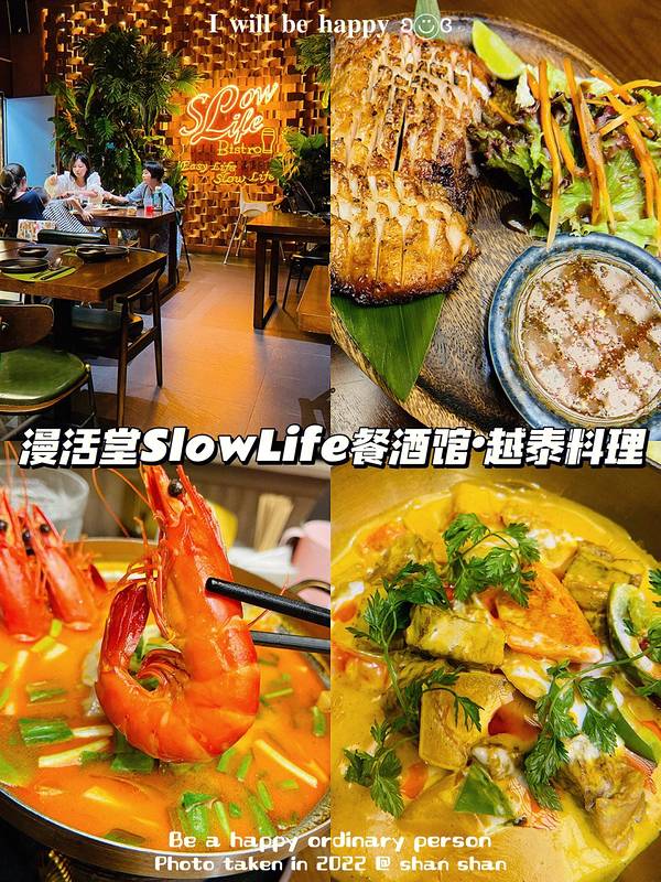 过来山姆溜达找吃的,想吃泰国菜就上点评找店铺,看着这里环境不错就过来试试,整体的装修风格和酒吧一样,单单看环境都不觉得是泰国菜🥲吃完后竟然让我惊喜 值得再次回味‼️ 「大头虾冬阴功汤」它们这个冬阴功汤真的很好喝‼️我已经吃很饱了都还会继续喝,三只大头虾无敌大只,而且肉质细腻爽口,汤底料无敌足👍🏻 「马拉盏炒通菜」相信泰菜肯定会必点它吧👏🏻炒得很香,不会咸,有些泰菜馆真的炒很咸 「马沙文咖喱香茅牛腩」它们的牛腩吃的出是进口牛腩,牛肉味很香,和平时市场买的真的不同,咖喱不辣却香浓,必须捞米饭吃🍚 「越南炸春卷」必须试🙋🏻♀️很好吃香脆脆的 总体这家店真的不错,值得再次光顾,全部点的都没踩雷🌟推荐 🏠地址:黄埔大道东659号B014房 🍤店名:漫活堂Slowlife 餐酒馆•越泰料理 💰🚈出行:5号线三溪站 人均:123