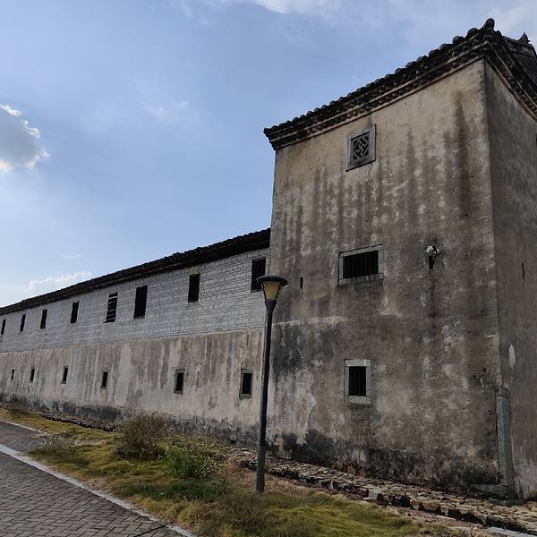 赣南是客家围屋最集中的区域,其中三南地区又是赣州围屋最多的地方。定南仅次于龙南,依然现存超过百座围屋。 定南最有特点的围屋莫过于明远第围和虎形围。虎形围是普通农民的围子,而这里初建时显然是大户人家。 📍详细地址: 定南县历市镇修建村,基本在定南县的入口处。 🚗交通攻略: 估计只能自驾前往,导航到明远第围,活着客家风情小镇都能找到。 ⏰最佳时间: 天气好的时候,这里是出片圣地。 💰门票价格: 20元,也就是意思意思的门票。 🌟亮点特色: 汉族先民南迁,形成客家民系,在当地为了维持小范围稳定居住,设计了围屋这种住宅。实际是整个家族形成的一个自然村。 明远第围是比较先进的砖石结构,建造时间不算久远,应该在清中叶。这种比较大规模的围屋,一般是家族中出了大官或者大款才会出资建造。这个围子里的居民大多姓谢。 这座围屋前院和正厅都比较宽阔,祭祀用的祠堂也相当宏伟。但相对来说,装饰并不考究。四角设有炮楼,可以看到依然保留的步枪射击孔。一看就是大族的宅子。 围屋里,还有一些客家民俗的展览,但少到可以忽略。 📌实用tips: 三南地区的很多景点都是依附于地产开发,其中的原因就不多说了。大多数都是比较凄凉的景象,这家也不例外。 这边的规划是住宅,商业,旅游的大综合体,边上是客家风情街。但是没有任何一个商铺开门。 甚至这个围屋也以口罩原因闭门谢客,但也是有正常方法可以进入的,办法就不多说了。