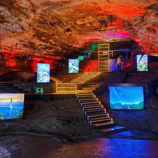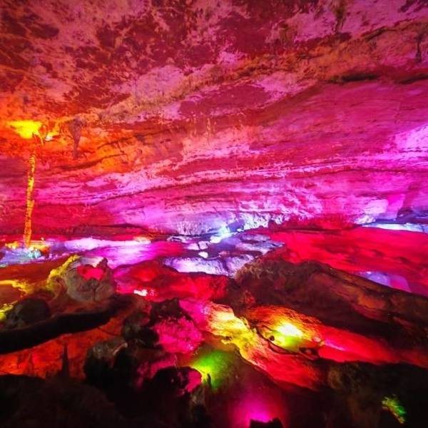 十二背后双河谷景区,名声不算大,不过景区打造还是不错,选择了这个冷门景点,体验还是很满意的。 景区是由两个巨大的地下岩洞组成,天气炎热时进入,会感受到无比的凉爽,非常适合避暑。两段行程总体路程还是较长,观光车建议乘坐,其中有一段是在岩洞中奔驰,体验挺好。 另外景区还有特色的探洞体验,看起来是很适合亲子体验,但一般需要提前一天预约,下次有机会会来尝试。