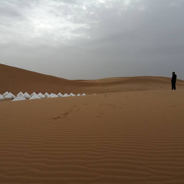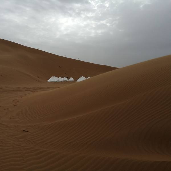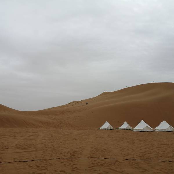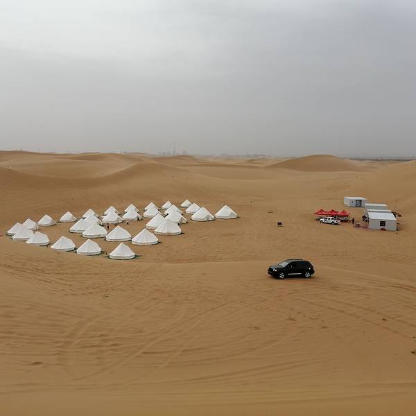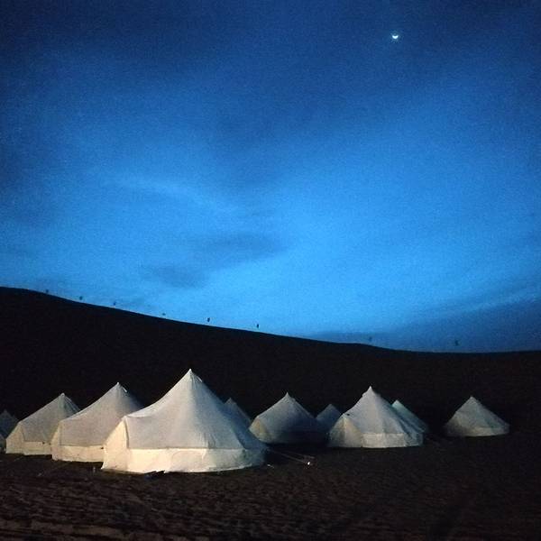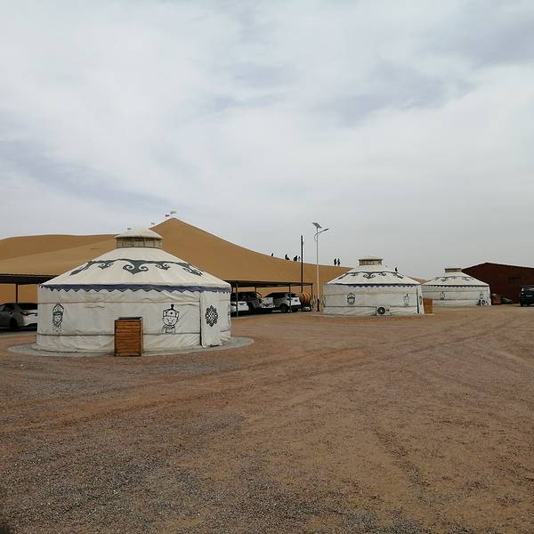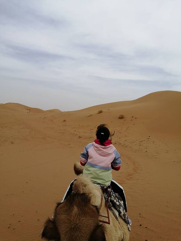 腾格里沙漠 我的出行目的已满足,接下来就是带娃去玩一玩沙子,让娃体会一下滑沙的快乐。本来想去沙坡头,但是机缘巧合去了腾格里沙漠,让我们更好的拥有一片沙海。腾格里是收集纯洁灵魂的地方,不要想着去征服它,要想着拥抱它,第一次看到它,我就深深地感受到我已经拥有这整片的辽阔。腾格里沙漠南越长城,东抵贺兰山,这个面积达4.3万平方公里的中国第四大沙漠,在相当长的岁月中并没有出现在主流旅行者的视野中,而近些年来的探索也只是止步于沙漠边缘——中卫沙坡头。一些深入沙漠腹地的探险也是以银川作为出发点,因此让我一直都认为腾格里沙漠隶属银川,实际上腾格里沙漠大部分是位于内蒙古阿拉善盟的阿拉善左旗。它左临甘肃右接宁夏,沙漠的主体在内蒙,腾格里一词也来自蒙语,意为“长生天”,是蒙古人心中最高的神。阿拉善左旗的开发程度远没有中卫成熟,但也恰是这种原生态,让人更想接近,于是我决定直接前往离沙坡头30公里外的腾格里沙漠露营地,感受最天然的沙场,享受最原始的快乐。我带了御寒的衣服和防晒用的丝巾之外,其他什么都没有准备,有时候,在路上与我而言更多的是体验和感受,万事俱备的妥帖反而容易丧失旅行的新奇和探索感。地理知识确实太欠缺,不仅区划没搞清楚,就连沙漠的常识都不了解,在此行之前,我以为的沙漠,寸草不生,一片连着一片的荒芜,来过之后才知道,沙漠里不仅有沙丘还有湖泊、牧场、还有各种耐旱植物和小动物,哎,孤陋寡闻了。当然,不成熟不代表着不方便,来到沙漠之后发现,住宿条件比之前预期的好太多,帐篷宽敞明亮干净没有异味,被子厚实得足以抵御外面的风寒。公共卫生间分为洗漱区和洗澡区,卫生条件虽然不是很理想但是已经算是不错了,热水随时供应的,是老板打得沙漠地下水,网络信号就非常不好了,不过能在空闲时间放下手机放空自己也不失为一件坏事。当然,如果这些你都接受不了,那最好不要选择住在沙漠营地露宿,可以在沙坡头附近游玩。放下行李,女儿就在沙漠上开心地玩起来,越玩越嗨,在玩到人要起飞之前问我是不是可以脱了鞋子光着脚撒欢,还问我是不是可以从高处肆无忌惮地翻滚着下来,在得到同意之后,变得尤为兴奋,那一刻我确实看到了文艺作品中写得那种“眼睛里迸射出的小星星”……突然感觉现在孩子还是蛮悲哀的,每天会被要求讲卫生啊、不能躺在地上玩啊、这脏脏那有细菌啊、不要把这个打翻不要把那些弄乱啊……很多童年应有的肆无忌惮都在各种规矩中消磨了,而被消磨的这些户外撒欢时光里也流走了他们大部分的童年快乐。我很庆幸选择来腾格里沙漠,而非景观区,因为疫情原因来到这里的游客也不多,随便爬上一座沙丘向前望、向后望、向周围左右望都是成片的辽阔宽广,瞬间感觉你拥有了整个世界,那种空旷感让人心中顿生满足,再躺在沙子上摆上个大字,头上是瓦蓝的天,身下是细细的沙,风儿一吹带起的流沙也一同卷走了所有烦恼。沙漠的落日真是把我震撼住了,天上的云堆就像被胭脂染上了色,这个时候阳光的照射不会特别强烈,最后一抹日落余晖留在这一片沙漠上,给整片沙漠镀上金色。彼时,起风了,沙丘在大风下泛起一阵阵波纹,呼呼作响的大风将沙尘卷了起来,好似给落日蒙上了一层面纱,空旷更显神秘,再先进的设备都记录不下这一刻的绝美。太阳卸下一身疲惫,将天空交给了星月,身处大漠,脚踩黄沙,头顶星空,篝火燃烧,烟花绽放,歌声悠扬……,一幕接着一幕地让人兴奋,欢快的夜伴着逐渐熄灭的篝火慢慢归于寂静。躺在沙漠里,夜空中镶嵌着无数的小星星,一眨一眨地,不时地有流星划过天际,这是个没有光污染的神仙地方啊,感觉已经很久很久没有见过这么多星星了,入夜后,银河更加明显了,如果条件允许真想这么静静地看上一个晚上,就是风大太冷了。一夜北风紧,帐篷被吹得晃来晃去,躺在暖暖的被子里听着外面北风的嚎叫,真懒得起床啊,但为了沙漠日出我还是裹上外套出了帐篷,真是太冷了。爬上一处小沙丘坐等太阳探头,红的有压迫感的太阳缓缓地从沙丘间升起。淡淡的红色光晕围绕四周,沙漠与天空一瞬间融合在一起,看不到边界。四周的景物随即显现出来,就在人沉醉的刹那,天已经悄然的亮了。虽然冻成狗,但真真太值得了。孩子早早起来,又跑到沙漠里去享受放飞的乐趣了,沙漠里的越野车、卡丁车、骑骆驼等沙漠项目要比沙坡头玩得尽兴也便宜很多。如果想到沙漠,可以考虑尽兴玩上沙漠项目,到沙坡头只到黄河区游览一下即可。 沙漠不仅能带给孩子无忧无虑,也能治愈我。虽只游玩了腾格里沙漠的一角,但依然感受到这片沙漠的震撼。千里之行,始于足下,当你一只脚踏入腾格里沙漠时,你一定会爱上它。在这片广袤的大漠,雄浑、静穆,它总是呈现一种色彩:黄色,并且永远都是这黄色,炽热、浓烈,一直铺到目之不能及的远方。要告别这片原生态沙漠,心中还是有点不舍,坐在沙丘上看远处成片的黄沙,竟有想落泪的冲动,这黄沙下掩埋了多少的世间悲欢离合,人最终都会落为尘土变成沙,所以 能起舞的时候就一定不要矜持。而那些人生烦恼也不过是指尖间的沙,既然握不住抓不住,那就扬了吧,这么大片的广博,何必太执拗那点点滴滴,快意人生才是最重要的!