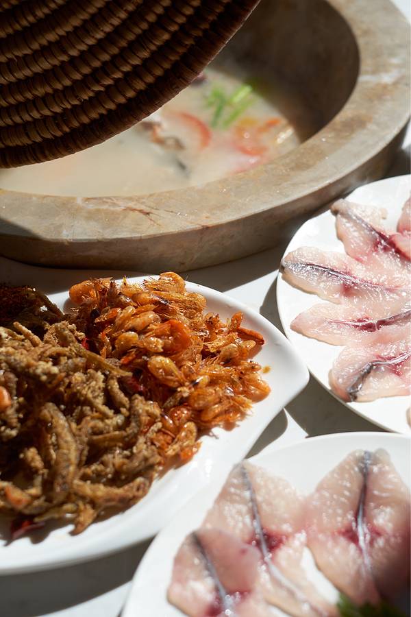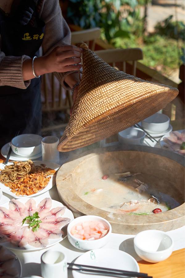 断崖式的降温,你需要一锅蒸汽腾腾的石锅鱼。 🐟店铺地址 023乡道尚庄民宿客栈,问当地人都知道澄江边马村。 🐟店铺名称 荷香庭渔庄 🐟店铺口味 去了抚仙湖哪有不吃石锅鱼的道理。我不能吃辣,老板娘热情的推荐了他们家的清汤滋养锅底,还有超值的4-5人套餐,仅218。受欢迎的还有酸汤锅底,下次来可以试试。 🐟推荐菜品 红脸青鱼,4个人吃一条,头和和鱼骨用来熬汤,鱼身切成鱼片涮着吃,鱼肉鲜美,鱼刺很少,切记鱼片不用涮太久,影响口感。 套炸银鱼,老板娘强力推荐,也是我最喜欢的一道菜,酥酥脆脆,值得品尝。 抗浪鱼,只有抚仙湖能吃得到,800/kg,据说快被吃绝种了。 🐟店铺环境 餐厅干净卫生,后院的风景是意料之外,非常适合拍照。 🐟店铺服务 老板娘亲自服务的,很热情,因为我们有外地朋友,所以教了我们很多吃法和技巧。总之,是一次愉快的用餐体验,来澄江旅游的朋友不要错过。