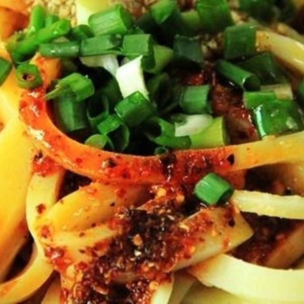 安岳县周礼镇的著名特色小吃,该品融入了川菜特有的麻、辣、香、脆的特色,使其更加香辣可口,伤心凉粉”。