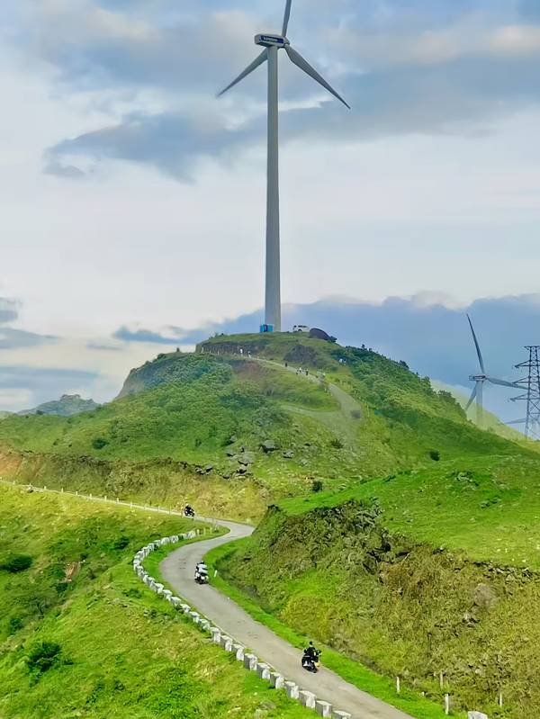 云浮新兴的风车山是站在高岗的感觉 心里的风车山情节,终于在端午实现 云浮新兴风车山是自驾不能上山的,只能租赁摩托车🏍️,我们在继大理之后再次体验了一下摩托车的速度与激情 🌈亮点特色:连绵起伏的山丘,挺拔高大的数个风车,当然遇到云海,日落或者日出更是完美的搭配 🚗地址交通:导航🧭新兴风车山即可 🎫门票信息:零元 [气球R]其他费用:租赁摩托车150-200元,根据车况的不同而定价,不限时含油费 ✨Tips: 1️⃣全程🈚️卫生间,上山前路上解决好 2️⃣全程据说46个风车,但基本都是开到18号风车,因为这个地点既适合日出🌅也适合日落🌄,所以是最佳观景点,由于16和17–19号分别不是连续的,所以要注意号牌,有一个岔路右边👉就是17-19号风车的所在地.图三🈶️石头堆砌的风车就是18号地点 3️⃣首图是2号风车,强烈推荐,再有就图二是三号风车观景点,很多徒步的人会走到这里,不再继续 4️⃣没错这里也是徒步的天堂,很多人走上来,感觉很累,当然这种乐趣也是我们这些体力不行的体会不到的,据说走到三号风车单程差不多就得近两个小时,因此自己要先选择自己适合的方式 5️⃣全程没有任何补给,所以水和食物必要要带好 6️⃣我们一直骑到21号风车,发现没有看到18号风车,又找了一段时间,耽误了一会所以全程往返2个多小时,由于山顶1000多米,所以一会雾大,一会晴天☀️,但没有看到日落,变化很快,不过风景很是美丽的,非常值得 7️⃣租车一定要提前联系,否则耽误时间也会影响心情,我租赁摩托车的这家车况不错动力也很好,🈶️十几台可以选择,在离目的地3.9公里的路上,所以也可以像我一样把车停在他家那,然后骑摩托车上山,他会陪你一起送摩托车过栏杆,回来也是同样地点提前联系即可,有需要可以提供司机电话,他也有越野车,有办法可以找人带你上山 8️⃣尽管城市温度有34度,但五点后山上很是凉快,必须带外套🧥,山上风大,冷的真受不了 9️⃣路上的牛很温和,简单按下喇叭📣,它会给你让路,不用担心 🔟周边有酒店,看日出也可以住这里,我们住在县城中心离这大约26公里很方便,此地18号风车也适合露营⛺️ 🈶️想法就要一一去实现,尽管这次又没有看到云海,但风景美丽也就没有遗憾了,我相信总有让我遇见的那一天