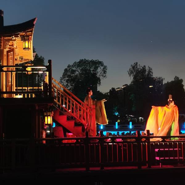 每个宋韵篇章都很惊艳,恍惚间身临其境,难得还留有气口。每首脍炙人口的宋词都让人热泪盈眶,真的让人感慨,这流动的文化盛宴,这丰盛的文化遗产。 演员或在水面,或在临水的舞台,或在缓缓交错的花船上。就是这般近在咫尺,缓缓路过宋人的人生篇章,可谓有生之年系列。 比《印象西湖》《最忆是杭州》的观看体验还要舒服。剧情是通俗易懂,0门槛都可以看得懂。 看完演出,夜色阑珊间,沿着上塘河走运,依然能看到循环的歌舞演出。上塘河,俗称秦河,是勾践、秦始皇时期的水上御道,也是隋唐之后的漕运命脉、商贸通途。 半山脚下有皋亭,曾是急递铺。明代,“皋亭积雪”名列湖墅八景之一。清代高鹏年有诗云“一个邮亭管送迎,南辕北辙往来程”。