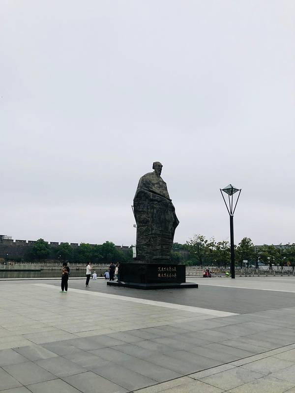 苏州火车站建的很漂亮,南广场出站口外是个小广场,广场中央是范仲淹的塑像。跟前有小饭馆和早餐店