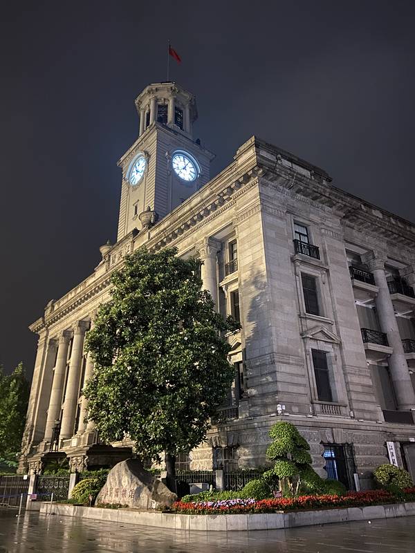 凌晨吃完肥肥虾庄,不想走路的我们打的回酒店,看到了熄灯的江汉关。酒店的迎亲车