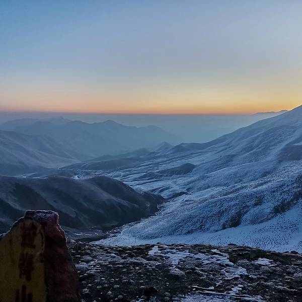 我们是2021年11月10号中午出发的,带着多余的床铺,充电宝,羊肉,带上期待的心情,一路欢声笑语,开始了这次拉脊山之旅,其实出发前也做过攻略,发现几乎没有大冬天去拉脊山的攻略,也是,谁愿意在零下二十度的晚上欣赏夜空呢,心中有些失落,一路上的心情也在波荡起伏,期待中带着忐忑,终于赶在日落前我们到达了目的地,绵延巍峨的雪山,老鹰盘旋在日空,空气中带着一种强烈的孤独感,云彩估计也怕冷,只剩一望无际的蓝的透彻的天空,我们披着军大衣,设好桌椅,架好设备,等待着日落,当我们啃着羊排,嘴角流油,互相吹牛的时候日落到来了,那一瞬间我仿佛读懂了大自然的语言,语言根本无法描述彻底它的美,那种空灵的、激荡的、玄美的画面直冲灵魂,环绕着毛光的橙日慢慢坠入漆黑又泛白的山层,它的余光摄入与之相对的黑夜中,好像这光有灵魂一样,与黑夜产生了激烈的斗争,不敌黑夜的侵蚀,拖着流血的身躯缓缓坠入深渊,然后回到地球另一面。慢慢深夜,当夜空撕下了它的钢化膜,露出最清晰最原始的一面,天狼星仿佛在炫耀一般闪着神秘的红光。带着魔力的黑夜袭扰着我们的大脑,慢慢的,我们就像若隐若现的星辰一样入眠,半梦半醒中被叫醒,原来黄昏见过面的老伙计绕地球一圈之后,养足了精,蓄好了锐,没见其形,已见其光,微黄的光缠绕着黑云,强势的将它们赶出自己的领地,高傲的挺着它如火的胸腔向高处挺近着,就像打着哈欠的我们一样泛着白雾,像以往一样打破了黑夜的统治。