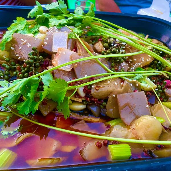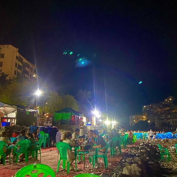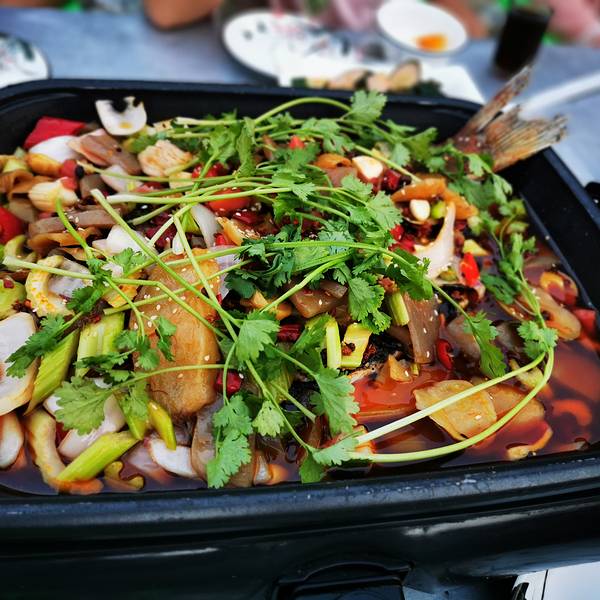 第二站 大宁古城 🚙🚘交通:软件打车从巫溪新县城到大宁古城约13-14元/车,出租车按5元/人收费(大人、儿童同价),最好不要自驾过去,停车位有限。 🥢🥢特色:这里最大的特色就是在大宁河中用餐,我们来的时候水流相对急,就在河边用餐🍴。整条街全是烤鱼,你要问当地人哪家最好吃😋,他们会告诉你味道都很不错,随便挑一家就行。 这里是巫溪最出名的夜市,当地人叫做“老城河坝”,没有人不知道。朋友聚餐、宴请都会定在此处,晚上七点过后整个大宁河边全是人。当地人告诉我,在大宁河边玩水还有讲究,最高规格的待遇就是边吃饭边玩水,三五成群把酒言欢;其实就是在河边拥有一席之地的凉椅,花几块钱买个座在河边纳凉;最不花钱的就是河边的石头,你看每块石头都光洁如玉,那是人坐出来的。由此,让我联想到这不就是巫溪版的“清明上河图”吗,看到了市井生活,渗透着人间烟火气。🍝🍝菜品推荐:青花椒味的烤鱼、泡椒味烤鱼、麻辣豆干、泡黄瓜🥒、锅巴洋芋、酸辣土豆片、黄金馒头,这些都是当地特色菜,值得一试。推荐:泡椒味烤鱼推荐:青花椒烤鱼每晚七点过后坐无虚席,相当热闹……