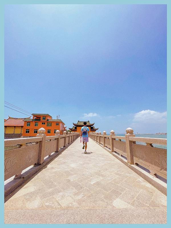 建在黄金海岸浮屿上的寺庙——泉州洛伽寺,一座神秘的海上寺庙,由海外侨胞捐建。涨潮时,寺院似在海上屹立,任凭白浪滔天,煞是壮观。威镇鳌东,并非虚言。“洛伽寺”三个字是由中国佛教协会会长赵朴初亲笔题字。寺内建有“天王殿”、“圆通宝殿”、“念佛堂”、“藏经阁”、“钟鼓楼”和“五观堂"等。 整座庙宇巍峨壮观、雕梁画栋、金碧辉煌,以海天为背景,意境开阔,亭台楼阁与烟波浩渺、孤帆远影奇幻交织构成一幅奇绝的风景画。 过桥入寺,感叹建寺不易。