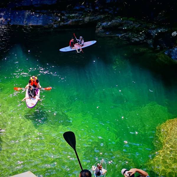 桂林龙潭江的果冻水,真的美到如其名!藏在猫儿山南麓的青山间,一汪汪潭水澄澈似琉璃,碧绿如翡翠,通透的质感像凝固的果冻,水底鹅卵石与水草清晰可见。阳光洒落,波光粼粼的水面晃着细碎金光,深浅不一的水潭...