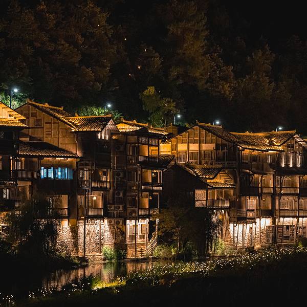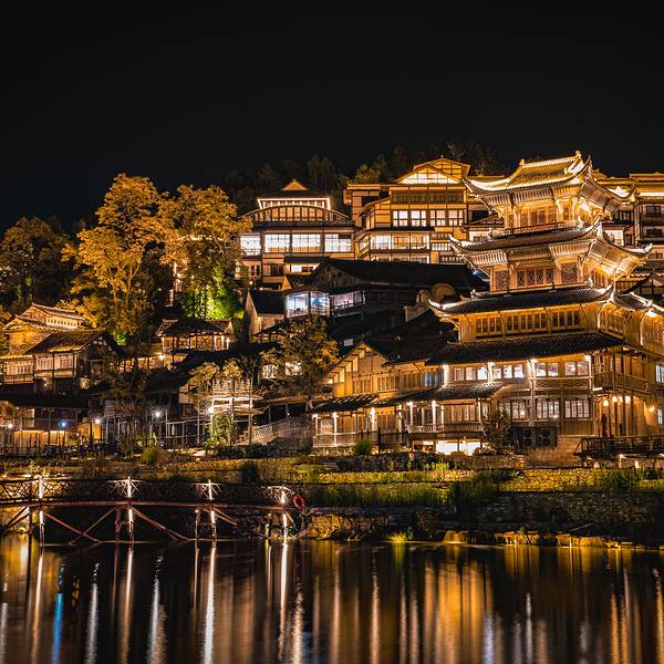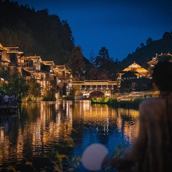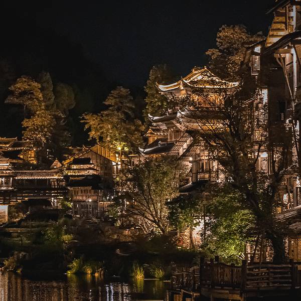 日看烟雨亭楼,夜揽灯火星河一江烟波荡乌篷,一湾暮色染青峰 秋月照梢头,灯火缀入梦 青山缠碧水,绿树掩红楼 是夜,华灯初上,我恍若误入了千与千寻的世界…… 这里不是江南,这儿是贵州遵义乌江寨【乌江寨国际...