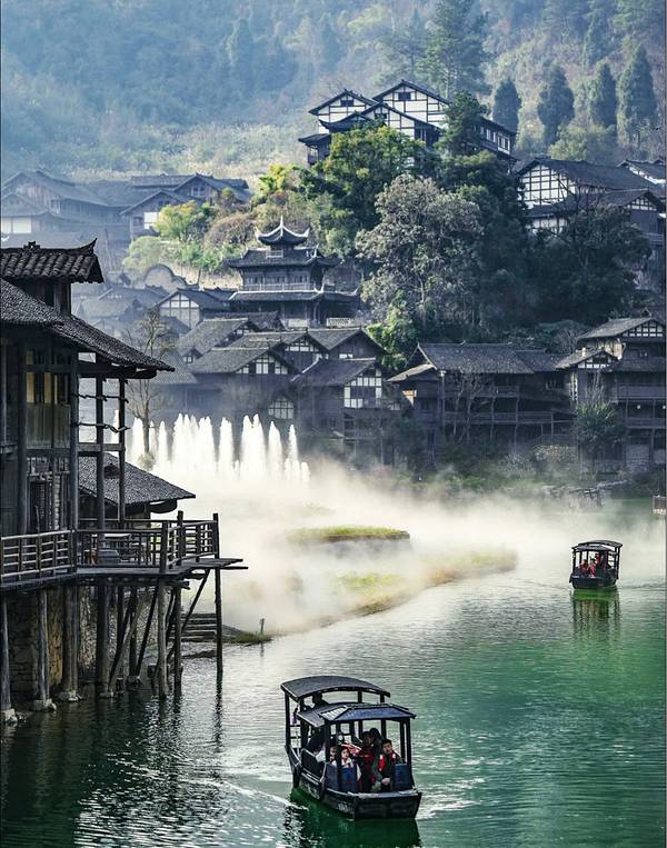 日看烟雨亭楼,夜揽灯火星河一江烟波荡乌篷,一湾暮色染青峰 秋月照梢头,灯火缀入梦 青山缠碧水,绿树掩红楼 是夜,华灯初上,我恍若误入了千与千寻的世界…… 这里不是江南,这儿是贵州遵义乌江寨【乌江寨国际旅游度假区】 📍地址:贵州省遵义市播州区尚嵇镇 💰门票:日间票60元,16:00之后是夜游票120元。建议可以白天入场的玩到晚上看完夜景再回,住宿在景区内免门票 🕘开放时间: 09:00-22:00(夏令时)16:00-21:30(冬令时) 🚗交通:建议自驾前往,从遵义市区到这里车程约1h,门口停车位很多🎡游玩: 1⃣独竹漂表演:独竹漂是一种独特的黔北民间绝技,也被纳入了贵州第三批非遗名录,到此必看 11:00、14:00(周末)、16:00共三场,每场20分钟2⃣乘船游江:60元/人。吊脚楼下,梯田间泛舟穿行的独特体验3⃣戏台喝茶看戏,享受悠闲惬意生活,18:00点在此还有魔术表演4⃣夜间表演:每天20:00开始,景区中央区域就陆续有文艺表演、喷泉灯光秀、无人机等演出,可以提前向中心广场走去,占据最佳观赏位置