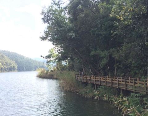 风景不错,水质一般。沿湖栈道,湖景还是不错的,湖边有开元梅子湖酒店,酒店里是专用的一条栈道