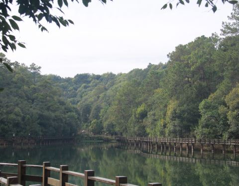 沿湖栈道,湖景还是不错的,湖边有开元梅子湖酒店,酒店里是专用的一条栈道。风景不错,水质一般。不需要门票,游湖的人不少,车停了一路。