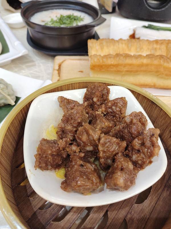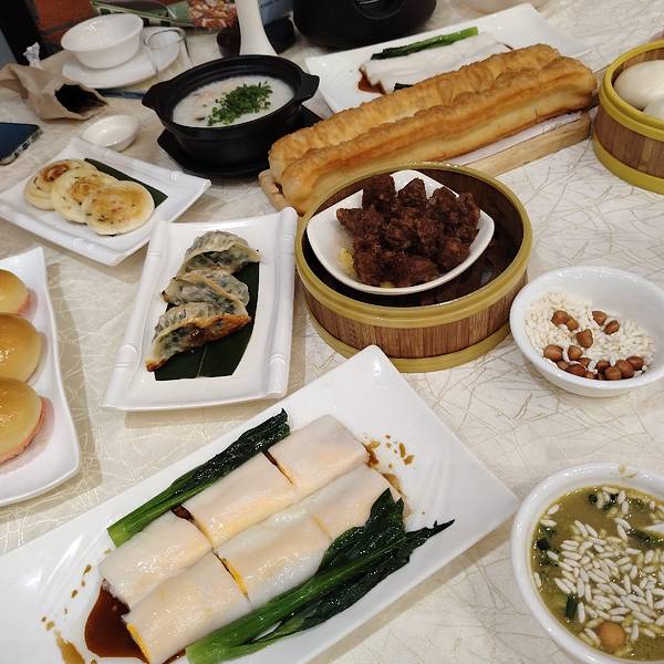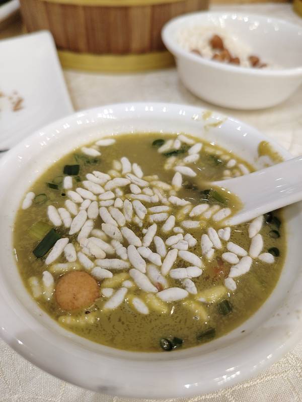 在两广,喝早茶去一个很惬意的时间,各式各样的茶点,一壶普洱茶,就让人食欲大增。在南宁锦春府酒家(锦春路店)还有免费的油茶喝,只是来晚了就没什么配料了。