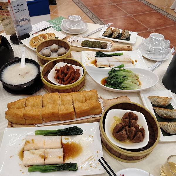 这早茶看起来真不错,我要开动了! 这是在南宁锦春府酒家的早茶,第一次到这里喝早茶,茶点也是大众化,肠粉、叉烧包、韭菜饺子、牛肉丸、花卷、油条、皮蛋瘦肉粥等,不过还是很好吃。