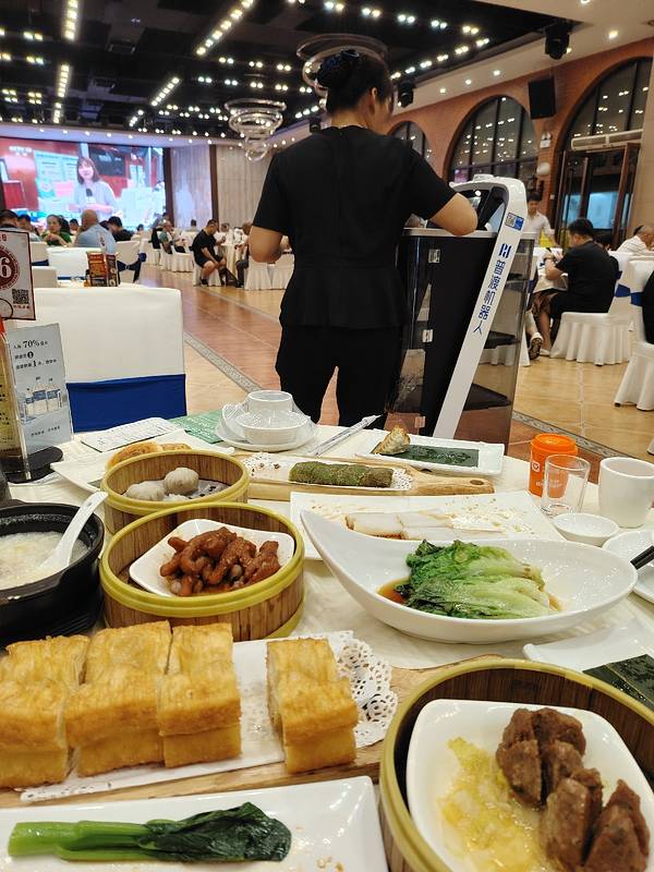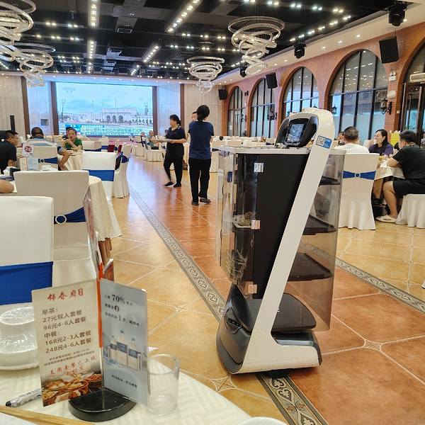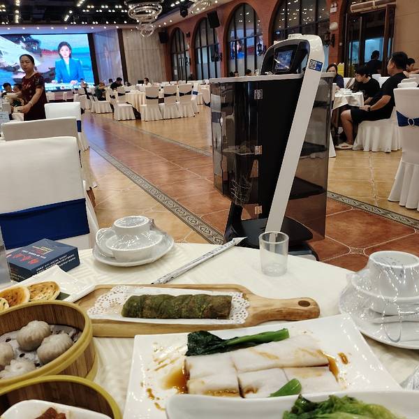 机器人送菜好像成了南宁一些餐馆的常态了。 昨天上午到锦春府酒家(锦春路店),看到都是机器人把茶点送过来的,方便又卫生。而且这里的茶点挺好吃的。
