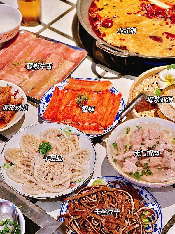 📍朱光玉火锅馆(万达店):涪城万达 💰人均100(丰俭由人) 装修复古又国潮,充满了人间烟火气,拍照很出片。 五点半在手机上排号,七点四十才开始点菜,有些菜已经没有了,建议早点手机排号早点去。 锅底我们点的微辣,我觉得已经很辣了。 菜品推荐 1️⃣包子 根本没来得及煮火锅 2️⃣暴打柠檬茶 一大块冰在杯子里,超级解渴又解辣。大众点评2.9元,也很划算。 3️⃣虎皮凤爪 软软糯糯,煮一下很入味。 4️⃣特仑苏鲜鸭血 超级嫩,像嫩豆腐一样。 牛乳冰系列就是拍照好看,点一份一个人真的吃不完。 服务员都很有礼貌,服务很到位,跟海底捞就差帮我带孩子了。 ⚠️很热很热,可能是最近限电的原因,空调开了也热。