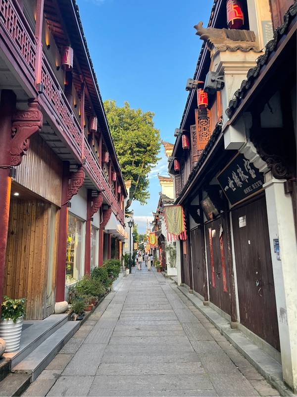 这是一条颇具历史年代的老街。街道两侧都是白墙黛瓦的两层楼阁,一楼商铺,二楼可以住人。这里的商铺大都是…