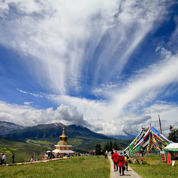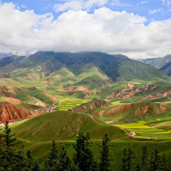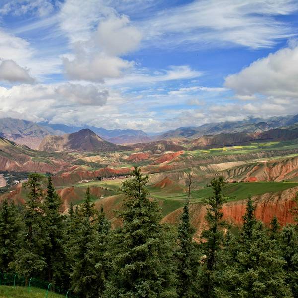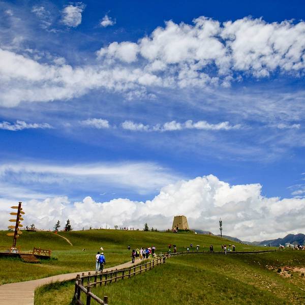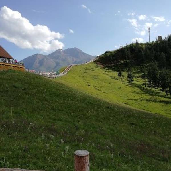 卓尔山坐落在海北州祁连县县城东北侧,八宝河北岸,与藏区神山阿咪东索景区(牛心山)隔河相望,是祁连县内有名的景点之一。 它是祁连山的一条支脉,呈现丘陵状的草原风光,而其本身地貌又属于丹霞地貌(藏语称“宗穆玛釉玛”,意为美丽的红润皇后),山体露出的地方都是赤红的砂岩,与碧绿的草原层叠交错,非常漂亮。加上山脉两侧的林海、油菜花、村庄、县城,景色层次感很强,深受摄影师喜爱。 除了本身的景色外,它也是一个很好的观景台。站在山顶视野非常开阔,周围没有任何遮拦。对面就是一山尽览四季风光的牛心山。牛心山山顶积雪终年不化,而山下则是碧绿林海,山脚下一条八宝河像哈达一样环绕在身边,景色非常不错。 游览景点建议准备半天时间,可以早上去,能看美丽的日出,一直玩到中午回县城午餐。景区里有观光车可以从大门到达山上,方便轻松。