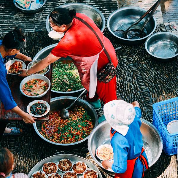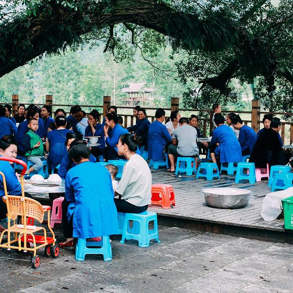 坐上公交,来到离县城最近的三宝侗寨,高耸的鼓楼,代表着寨子的繁荣。寨子里正在摆喜宴,人们的脸上喜气洋洋。