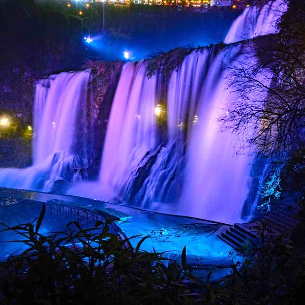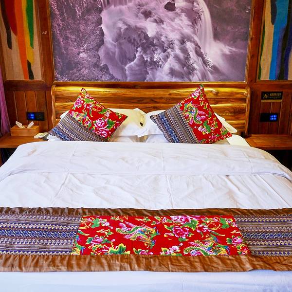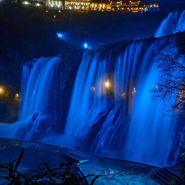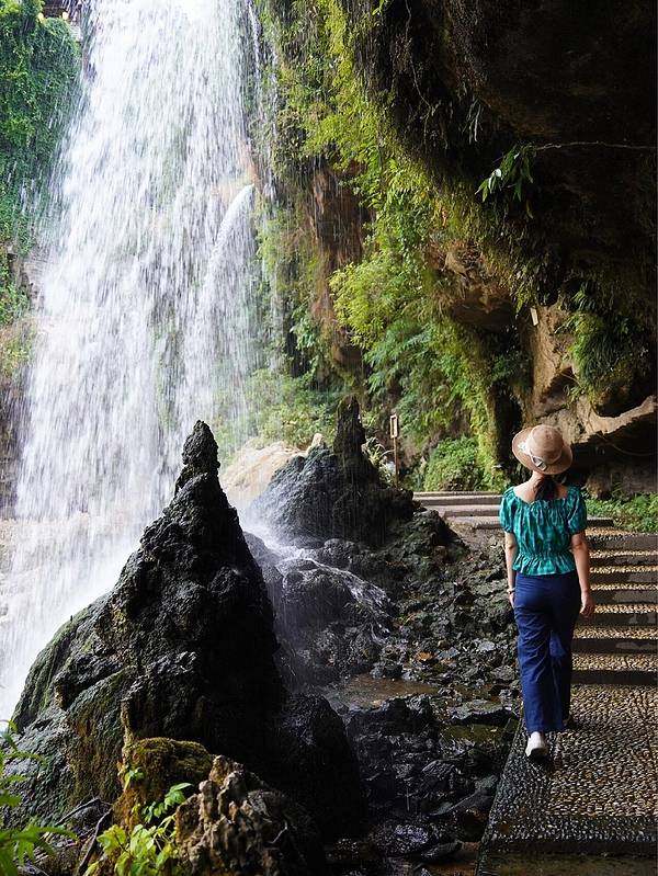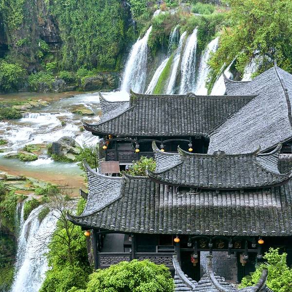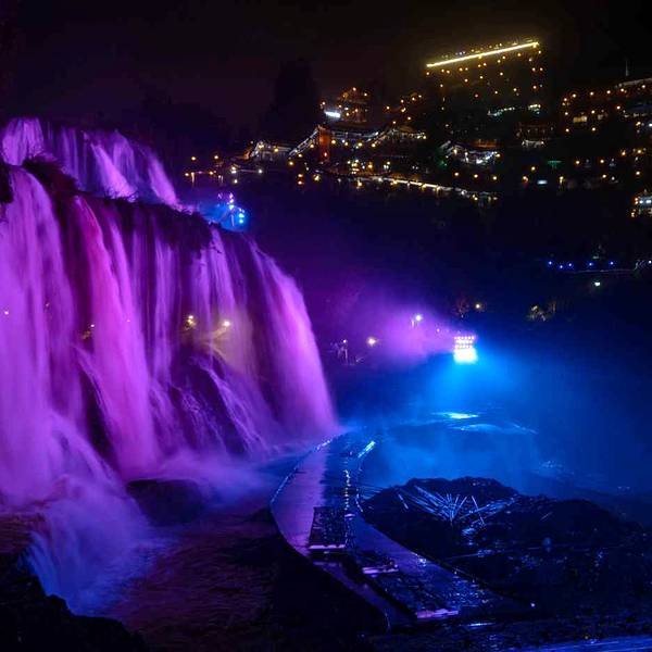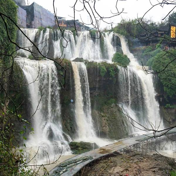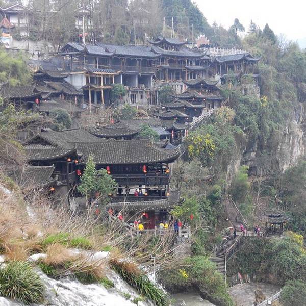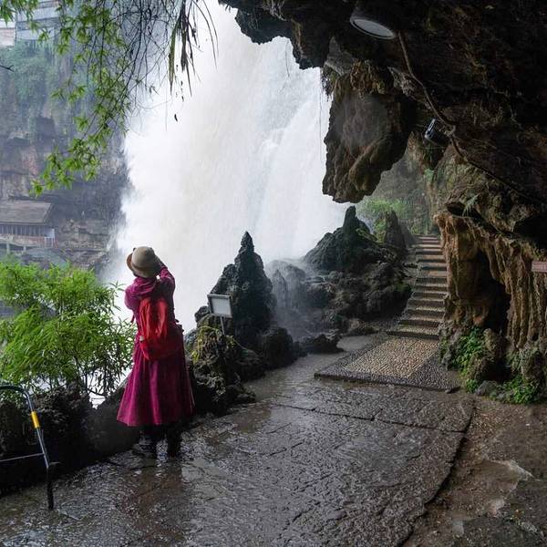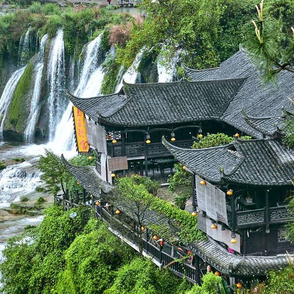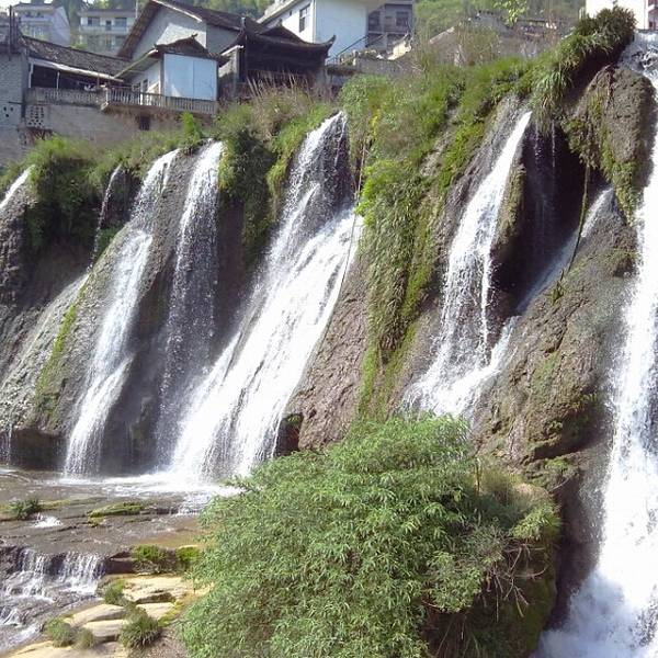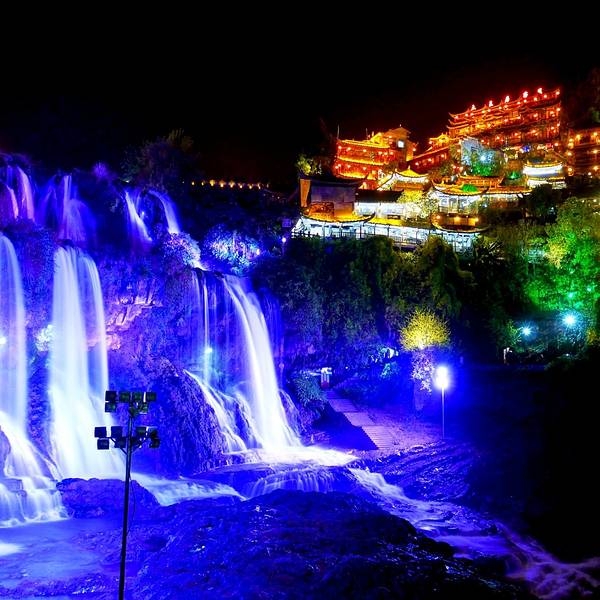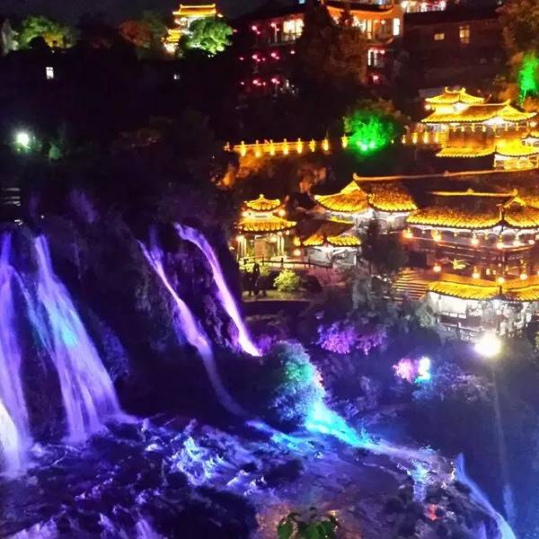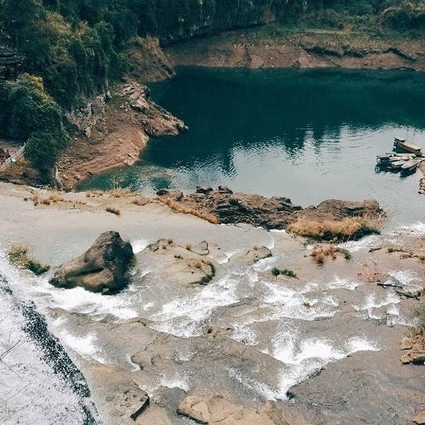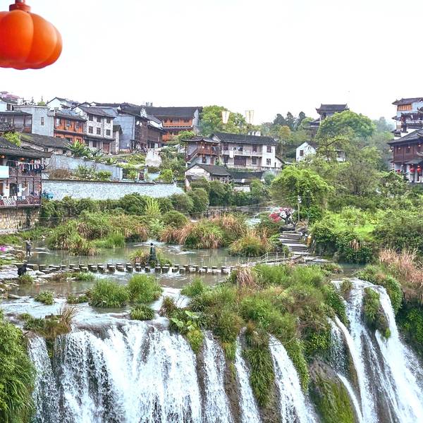 一般是中午到,先去刘晓庆米豆腐吃饭,再背对店面,往右边走,右转上楼梯↪沿路一直向下走就是去瀑布的路,会途经“观音阁”📍这条路是全镇街道拍照最好看的一段,走到江边看见瀑布检票口,进去逛完往上走,导航到“土王居客栈”📍右转↪付费观景台旁边就是免费观景台🆓拍完照去“土王桥”📍看表演