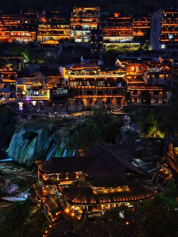 “挂在瀑布上的千年古镇”,看一看充满当地特色的土家吊脚楼,品尝电影《芙蓉镇》里的米豆腐。