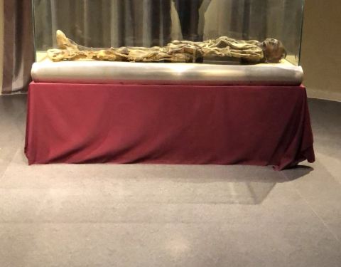 这具干尸保存完好,据说有2500年历史,可惜并没有对其做详细介绍,连出土于哪里都没有写在新疆博物馆没有看到干尸,在这里终于得以一见。这具干尸保存完好,据说有2500年历史,可惜并没有对其做详细介绍,连出土于哪里都没有写。因为考虑到要尊重古人,就不放图片了。其他展品很一般,一楼有个民族生...在新疆博物馆没有看到干尸,在这里终于得以一见。这具干尸保存完好,据说有2500年历史,可惜并没有对其做详细介绍,连出土于哪里都没有写。因为考虑到要尊重古人,就不放图片了。其他展品很一般,一楼有个民族生活风俗展,也可以仔细看看。 展开