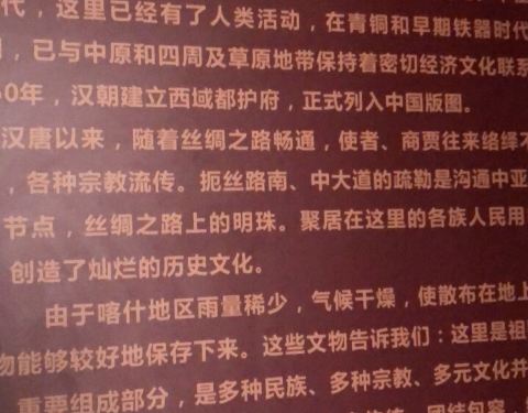 但是从喀什博物馆可以了解周边的文物地方。文物不是很多,但是可以了解一下历史。库车和塔县的文物值得去看文物不是很多,但是可以了解一下历史。整体来看不入吐鲁番博物馆。但是从喀什博物馆可以了解周边的文物地方。库车和塔县的文物值得去看