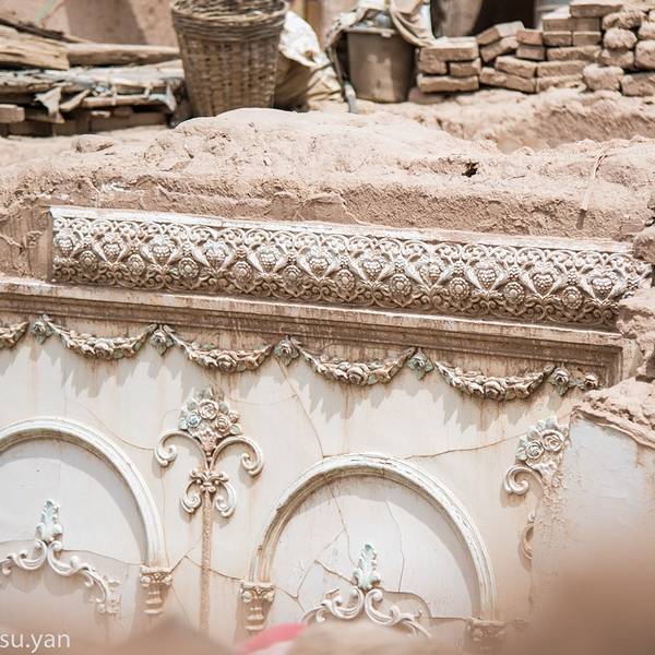 高台民居中有很多可参观的房屋,但进去后,基本上都是居民向你推销手工帽子和扇子,你就根本没时间参...转了转高台民居,一群孩子再阴凉处玩着泥巴高台民居的院门较老城更有特色,花纹图案更加繁多家族制陶师,给我展示了他的奖状和一些合影,又给我看了一些给陶罐上釉的天然石料,不过说心里话,陶罐制作有些粗糙民...转了转高台民居,一群孩子再阴凉处玩着泥巴高台民居的院门较老城更有特色,花纹图案更加繁多家族制陶师,给我展示了他的奖状和一些合影,又给我看了一些给陶罐上釉的天然石料,不过说心里话,陶罐制作有些粗糙民居中制作烤羊头的作坊,高台民居中有很多可参观的房屋,但进去后,基本上都是居民向你推销手工帽子和扇子,你就根本没时间参观房屋建筑路遇一个小姑娘,一看就知道长大就是一美女,不过小姑娘你露点了民居中光着脚的小女孩高台民居已经很是残破,有些房子已经倒塌或拆除,但里面的装饰还是很漂亮的这幅壁画很有特点,像极了70年代的宣传画,尤其那架可爱的小飞机,萌萌哒不同角度拍一下高台名居在民居附近河里游泳的孩子高台民居全景图,除了神话故事外,另一民间的说法是,当时维族没有分家的习俗,于是孩子越生越多,房子就在原来的房子上越改越高,也就形成现在的高台民居高台民居挨着中西亚大巴扎,这个角度可以看到民居附近的市井生活来张有绿树环抱下的大美图来张特写 展开