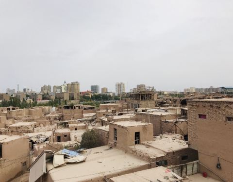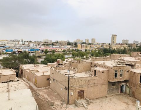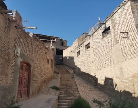 这里的房屋已经非常破旧,虽然有历史文化感,但确实已经是危房了。开车路过高台民居从牛羊大巴扎回来,时间尚早,决定在喀什市区内再转转。开车路过高台民居。