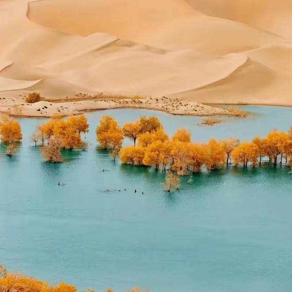 柴达木盆地是我国盐湖分布最为密集的地区之一,沙漠中分布着众多盐湖,如察尔汗盐湖、茶卡盐湖等。这些盐湖在阳光照射下,呈现出五彩斑斓的色彩,与周围的黄沙形成鲜明对比,构成了独特的自然景观。