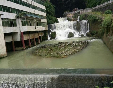 水流很大,安全性确实不高从硒都广场坐3号公交到龙鳞宫,车上没有多少人,原来15年8月已经停业整顿了,大门紧锁在桥边上拍了几张照片。水流很大,安全性确实不高!