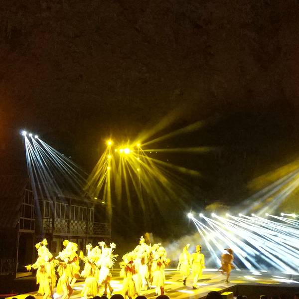 歌舞表演开始的时候,我们已经是去的比较晚了 在走溶洞的时候一直在想,怎么都没有人呢,后来发现都在这里看歌舞表演了。 去的时候人真的很多 舞台效果非常非常赞 因为灯光闪耀,演员一个个水灵灵的,尤其是妹子哟,就是土家的幺妹儿,这里称呼土家姑娘的一种说法 服装也是各种换,最后闭幕式各种演员会出来谢幕。 舞台烟气喷涌的效果,将整个舞会的氛围推向高潮,演员的声音都很好听 洞后要注意安全,不要见洞就钻,以免迷路。应当听从管理人员的告诫。游腾龙洞最好带上手电,偶尔用得上。洞里面终年恒温14-18℃,一般一件外套加一件T恤即可。整个游程大概要 3小时,在歌舞表演区有个小卖部,可以补充水和食物