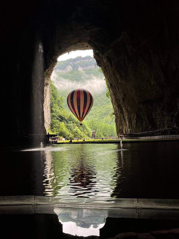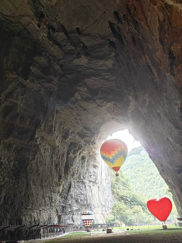 1. 门口热气球。腾龙洞最出圈的图就是洞口拍热气球了!基本上是标志性的景观。有兴趣的也可以坐一下,就是升上去落下来,120/位成人票,80/位儿童票。