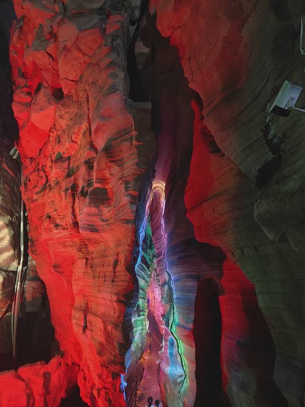 洞内灯光色彩浓艳,部分区域被批“像舞台布景”,掩盖了原始岩壁纹理;小卖部饮料价格翻3倍,餐饮性价比低。**应对**: