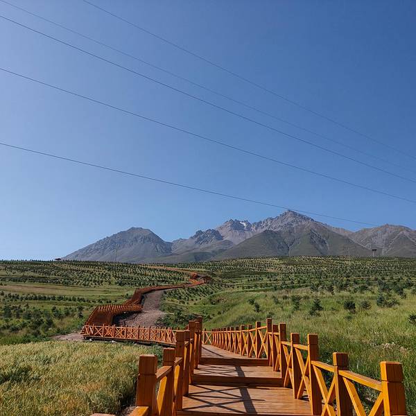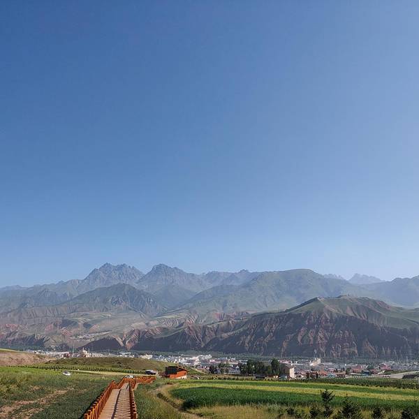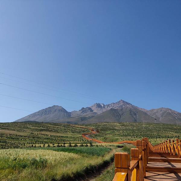 每到盛夏,一山尽揽四季之景。这座形似牛心的大山顶上终年积雪覆盖,每到夏季,山坡松柏挺拔,山下绿草如茵,菜花飘香。其北与闻名遐迩的祁连山和赤壁丹霞、绿草青松覆盖的卓尔山相映成趣。